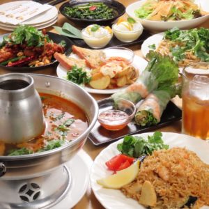 生春巻き、唐揚げ、鶏肉のガパオライス、